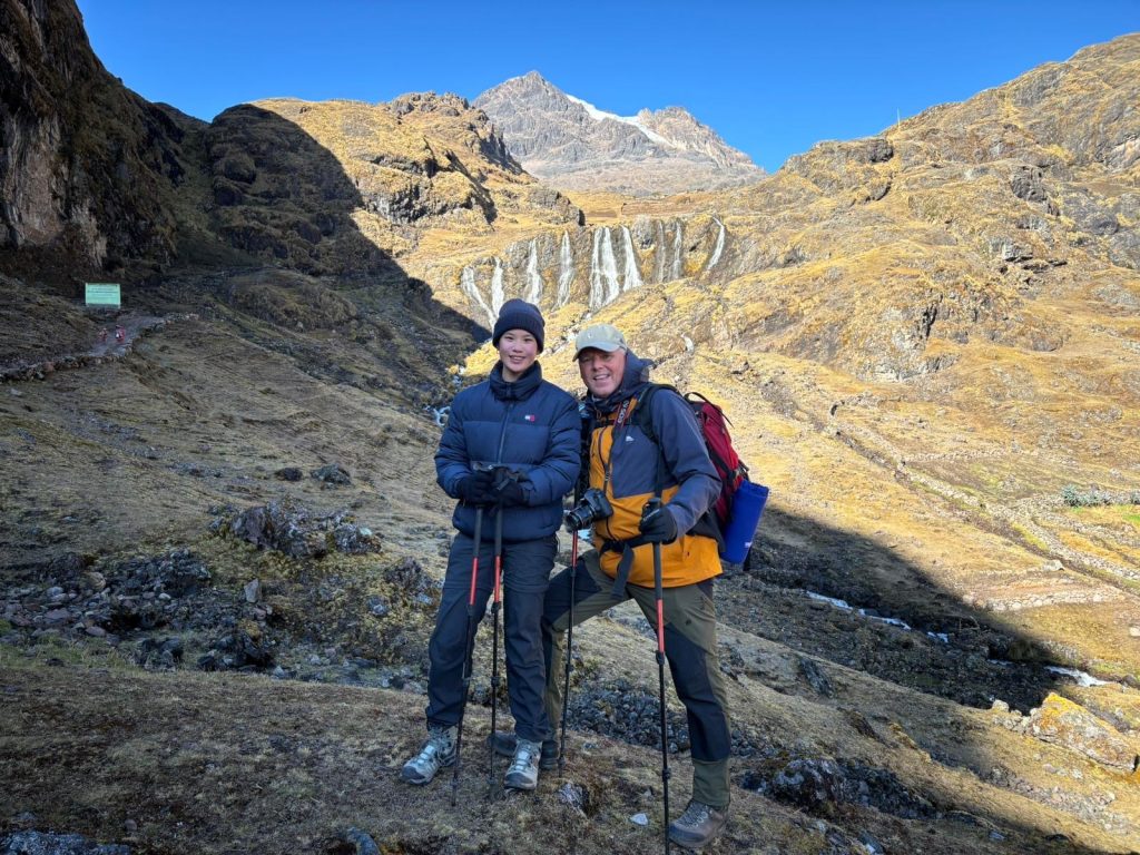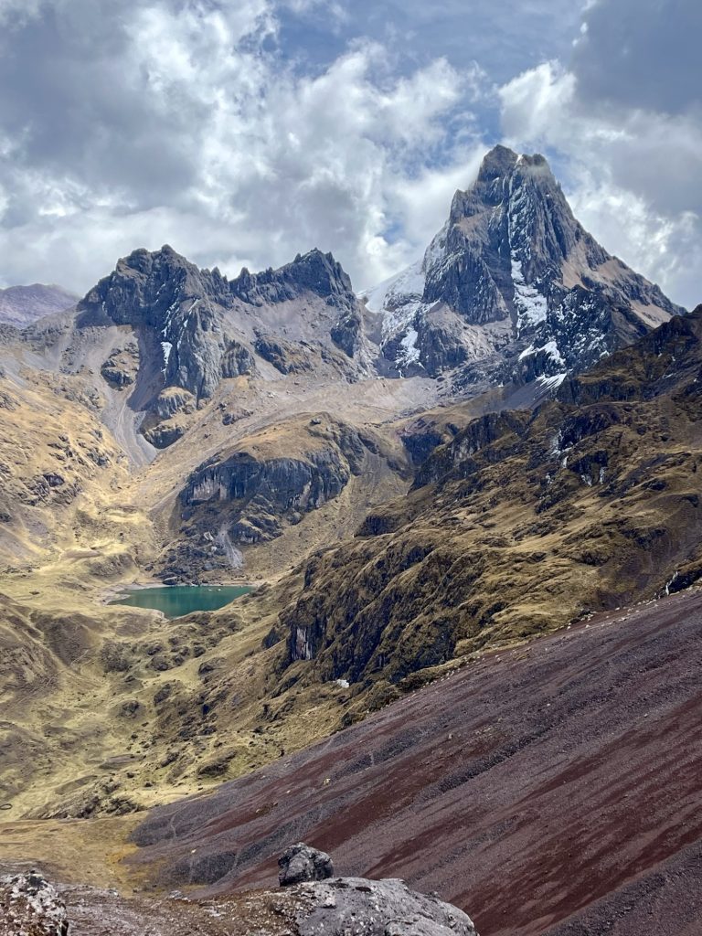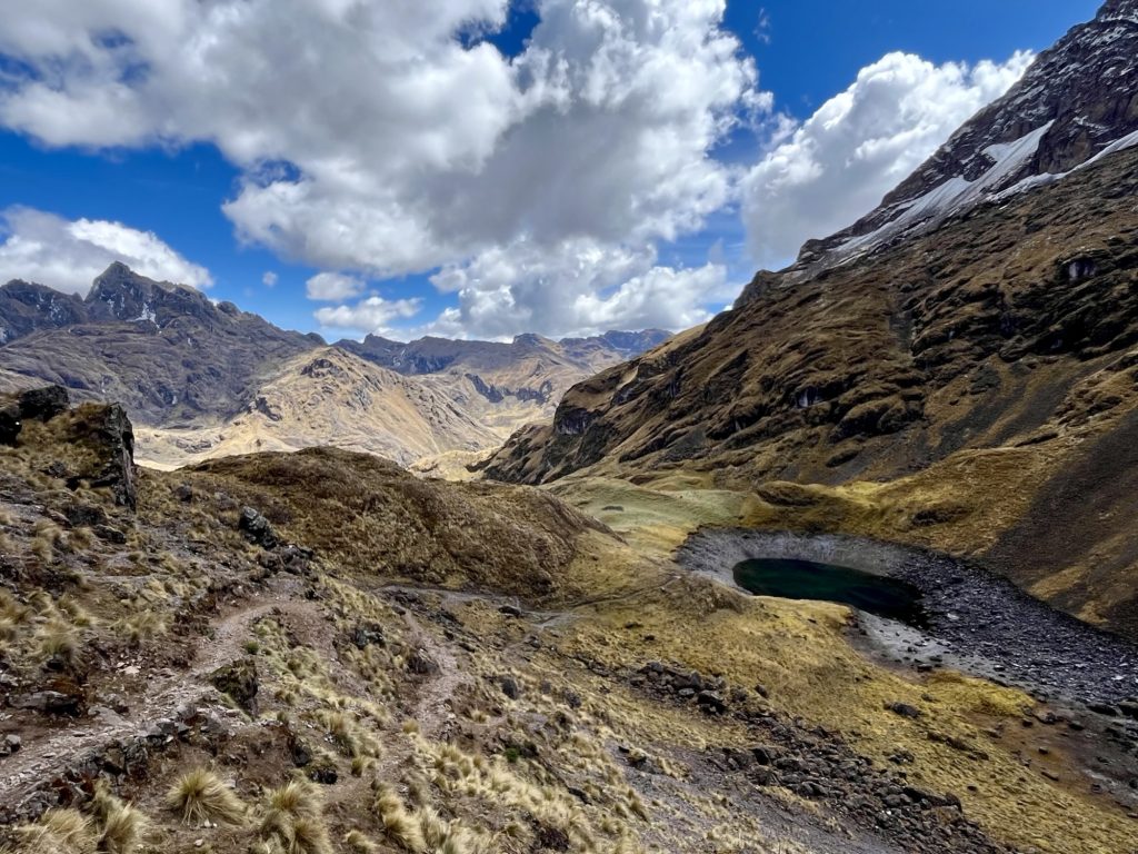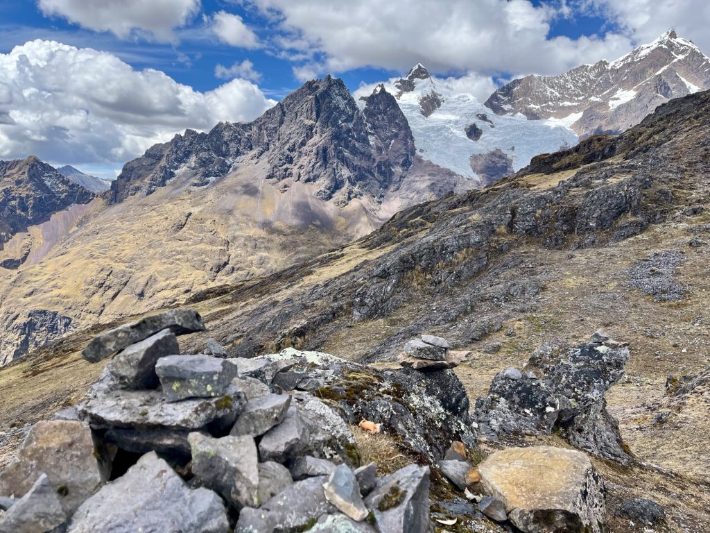 Deze dag was de zwaarste van allemaal. Na een snel ontbijt vertrokken we naar de Ipsaycocha‑ of Pachacutec Pass, het hoogste punt van de trek gelegen op ruim 4.700m. De klim naar de pas nam circa 5 uur in beslag, Deze tweede dag begon fris (net boven het vriespunt) daarom trokken we extra lagen aan en begon al snel aan de klim naar het hoogste punt van de trekking. De paden waren ruig en rotsachtig, en ik voelde de ijle lucht bij elke stap. Maar wat we ervoor terugkregen was onbetaalbaar ruige gletsjertoppen, glinsterende bergmeren, en stilte, een stilte die bijna heilig aanvoelde.