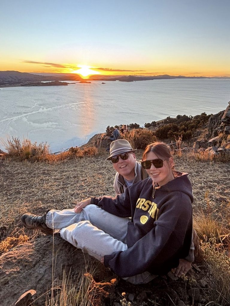 Uiteindelijk kwamen we aan in Ollantaytambo, een levend Inca-dorp met geplaveide straatjes en indrukwekkende ruïnes. Daar pakte we de trein naar Aguas Calientes, de uitvalsbasis voor een bezoek aan Machu Picchu. Tijdens de rit keek ik uit het raam naar de rivier die langs de rails stroomde en we dachten aan de stilte van de bergen die we achter ons lieten.