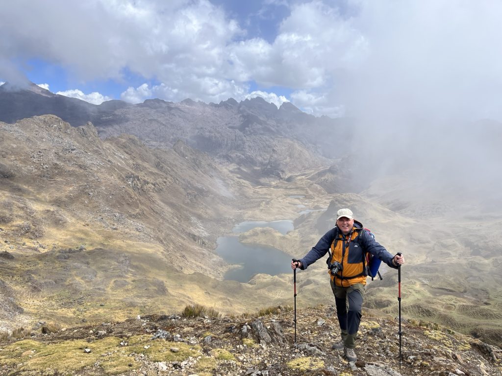 Na een paar stevige uren omhoog bereikte ik de pas. Ik stond daar in m’n eentje, met alleen de wind en de bergen om me heen. Het uitzicht was grandioos: achter me lag het pad dat ik had genomen, voor me de afdaling naar de groene vallei van Cancha Cancha.