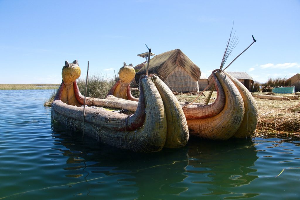 De traditionele boten van de Uros