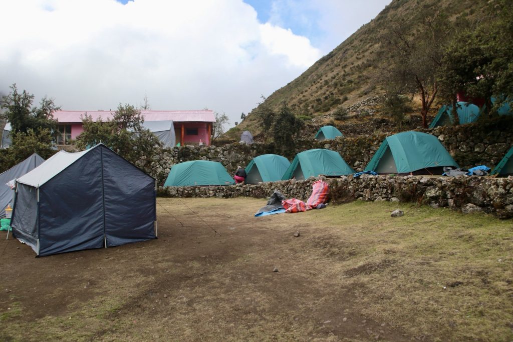 Toen we aan het eind van de middag moe aankwamen in Huacahuasi, stond onze campsite al helemaal klaar tent opgezet, slaapzak uitgerold, warme drank in de maak. En dat alles… terwijl ik zelf bijna kruipend (in iedergeval hijgend) het laatste stuk had afgelegd. Pas toen realiseerde ik me hoeveel werk de porters (dragers) al verricht hadden.