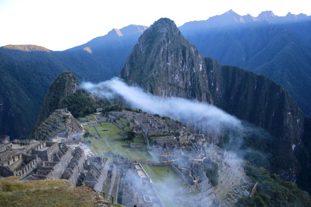 De nevel hangt nog boven de Machu Picchu